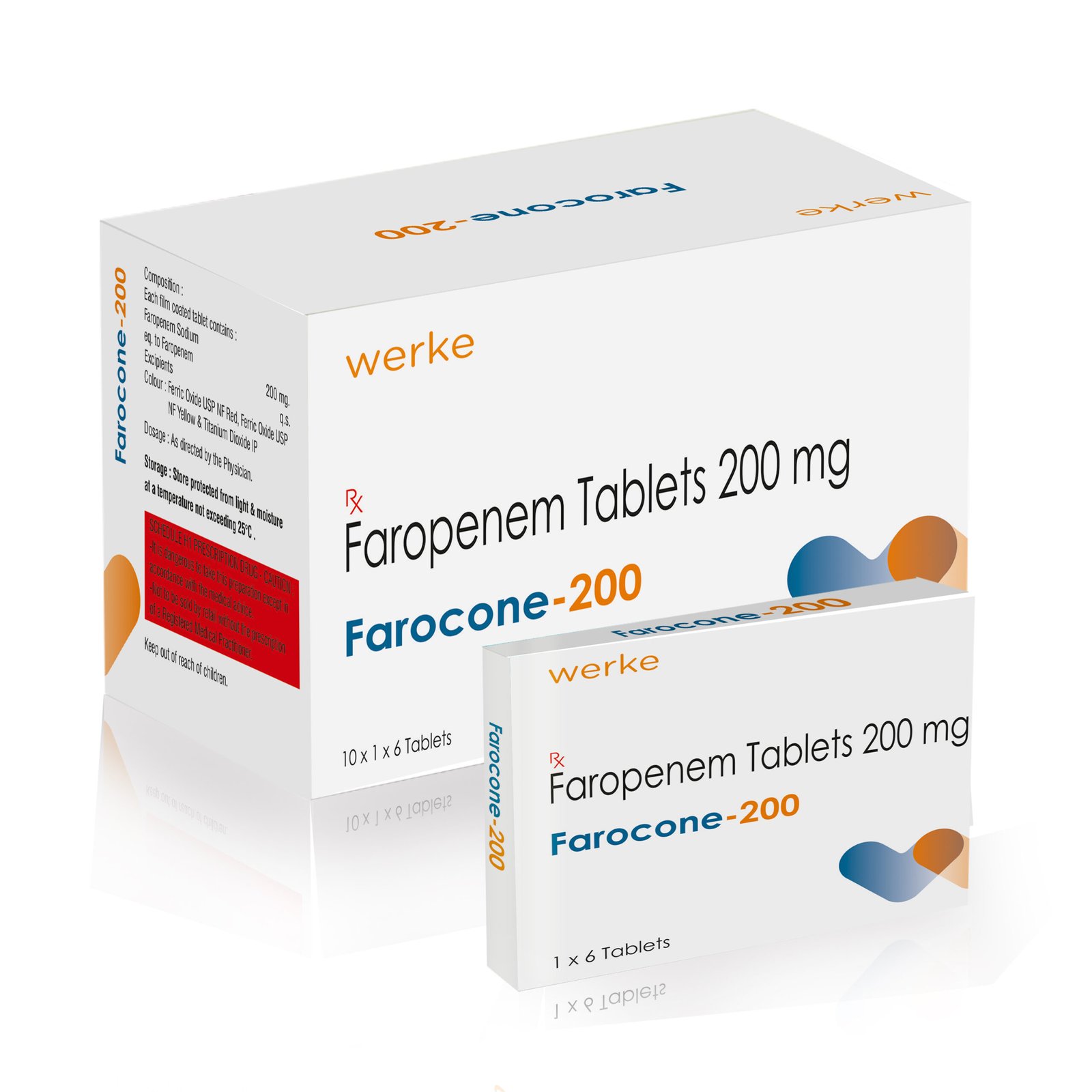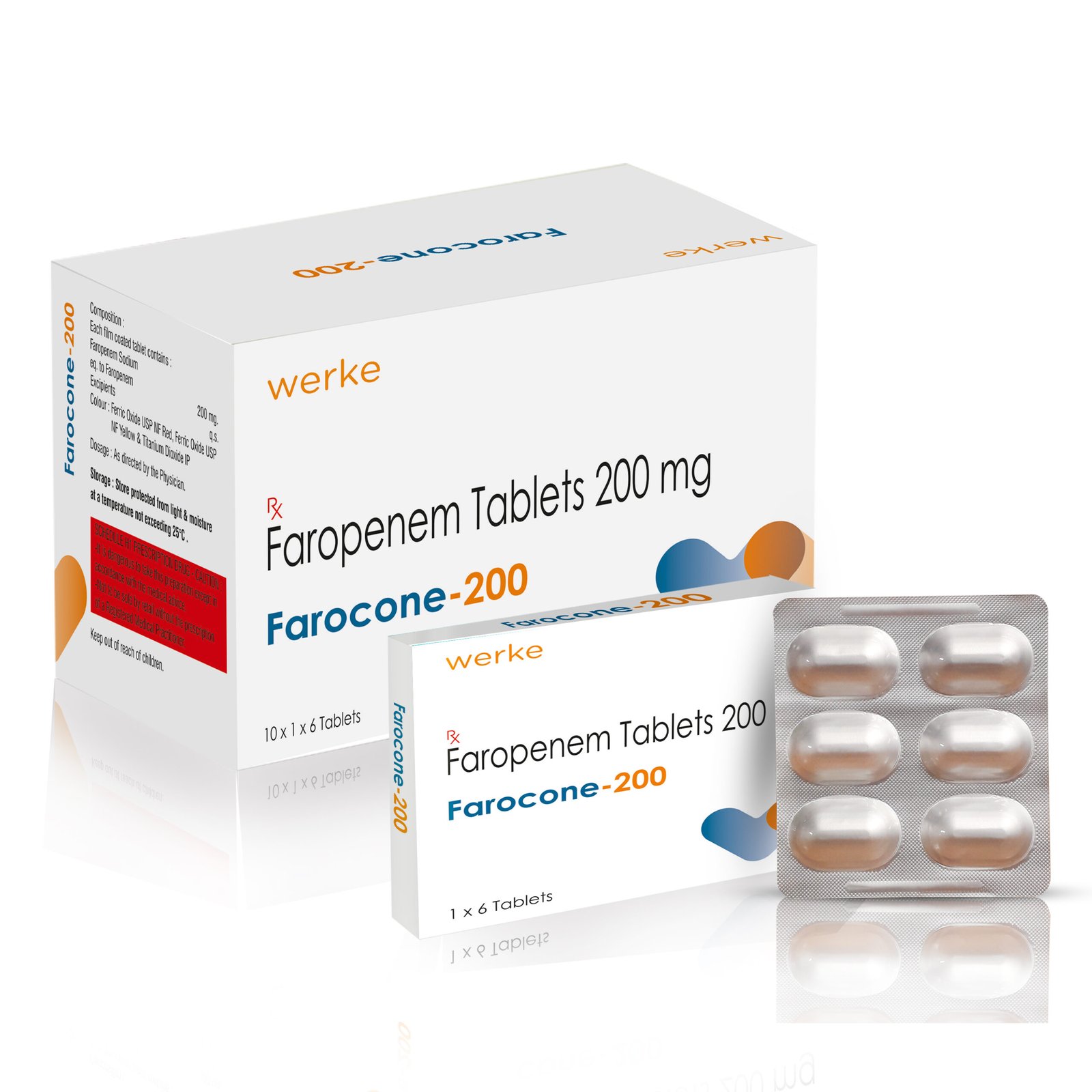 FAROCONE 200 Tablets – Faropenem Tablets 200 mg are used to treat a wide range of bacterial infections affecting the respiratory tract, urinary tract, skin, and soft tissues. They are particularly effective in conditions like pneumonia, bronchitis, sinusitis, and bacterial infections of the ear or urinary system. The medicine works by eliminating harmful bacteria, promoting faster recovery and symptom relief.