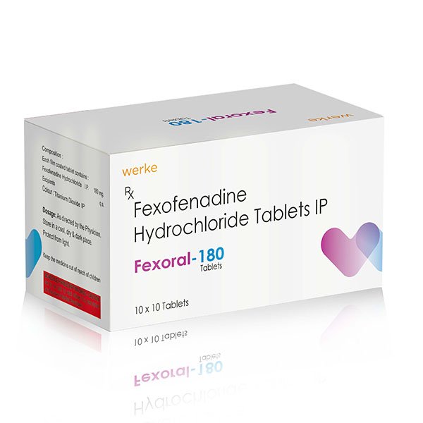 FEXORAL 180 is the latest addition in Werke Health portfolio, containing Fexofenadine 180 mg. Werke Health’s Fexofenadine 180 mg is one such product where there is no compromise on quality – it is manufactured only in reputed and trusted pharma units. Werke Health’s Fexofenadine I.P. 180 mg comes in strong 10×10 ALU blister packing – which is practical, easy to manage and there is no problem in delivery either.