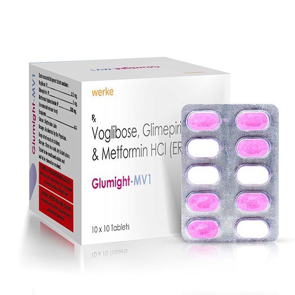 Werke Health has introduced Gulmight MV1 (Glimepiride 1 mg + Metformin 500 mg + Voglibose 0.3 mg) for diabetes management. At Werke Health, this tablet is introduced as part of our ethical range, reflecting top-notch quality and manufacturing by leading pharmaceutical firms. Werke Health provides Glimepiride 1 mg + Metformin 500 mg + Voglibose 0.3 mg in safe packs for better protection.