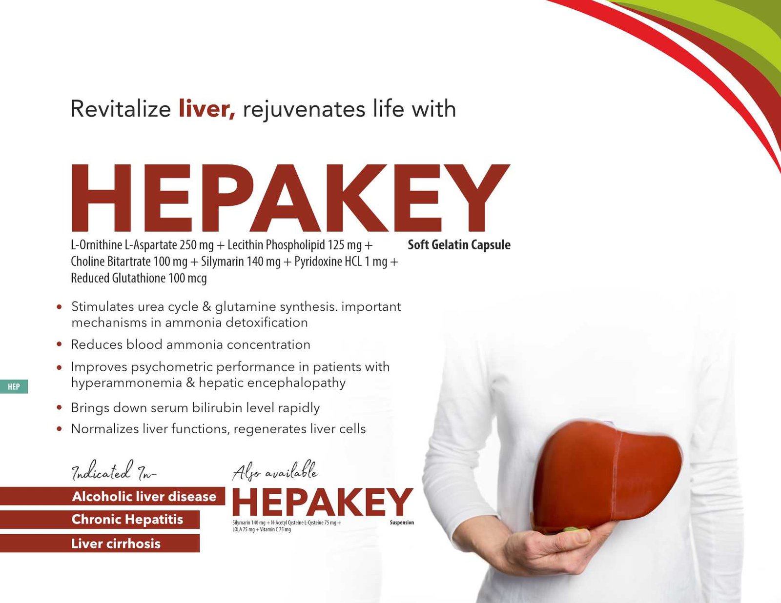 L-ORNITHINE L-ASPARTATE 250MG LECITHIN PHOSPHOLIPID 125 MG CHOLINE BITARTATE 50MG SILYMARIN 70MG PYRIDOXINE HCL 1 MG REDUCED GLUTATHIONE 100MCG